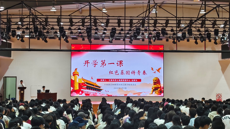 9月9日,吉林师范大学辽源分院联合辽源市烈士陵园管理中心在体育馆开展“开学第一课·红色基因铸青春”校园宣讲,活动共计700余人参加。宣讲员金照为带领青年大学生们一起回顾辽源的革命历史,了解革命故事,让大学生们更直观地学习红色文化、感悟英烈精神。随后讲述了“独胆英雄”陈树棠、“黄继光式的英雄民警”潘志山、“雷锋式的消防战士”盛景林等先烈们保家卫国英勇斗争的事迹,使同学们深刻感受到了革命先烈们的英勇无畏、舍生忘死的崇高精神。