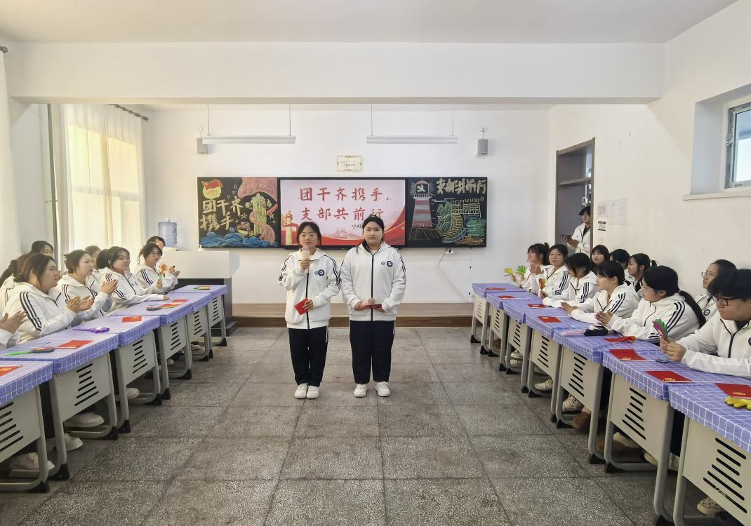 本次活动分为“启幕青春热力”“凝聚支部力量”“书记有约”三个篇章,层层递进、亮点纷呈。团干部表态演讲环节,同学们以“以初心为帆、以行动为桨”的青春誓言,展现了新时代青年团员的责任与担当;集体唱响班歌《我相信》、深情朗诵《少年意气赴征程》,昂扬的旋律与铿锵的语调,凝聚起支部上下团结奋进、逐梦前行的精神力量。